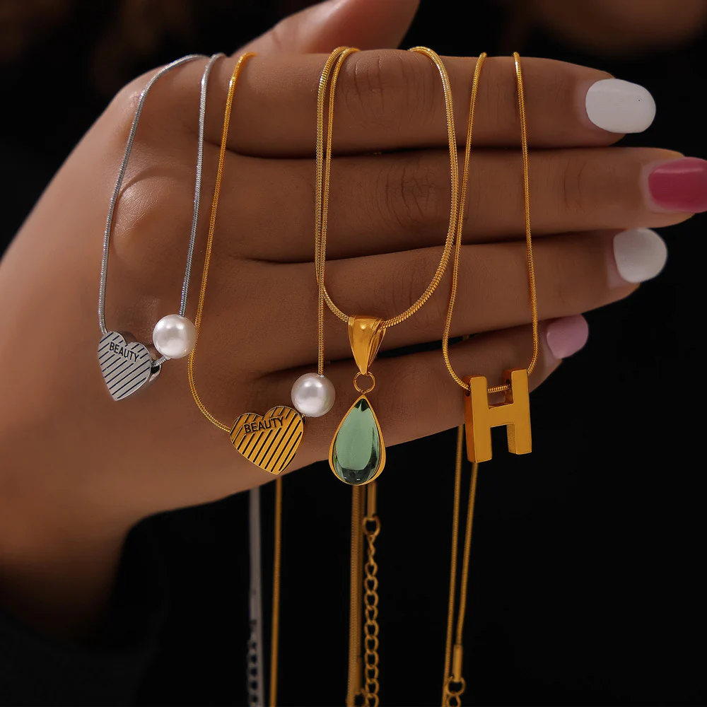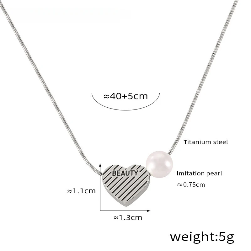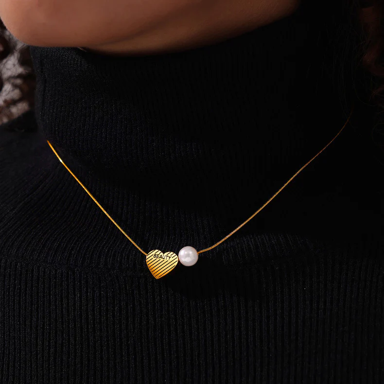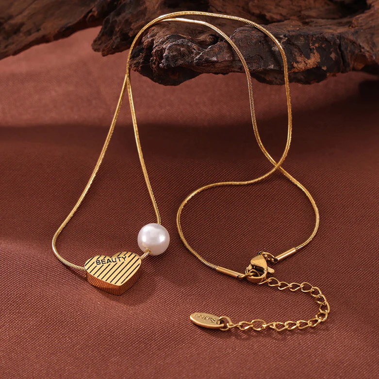 "BEAUTY" Heart Pearl Pendant Necklace